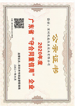公示證書:廣東省守合同重信用企業(yè)
