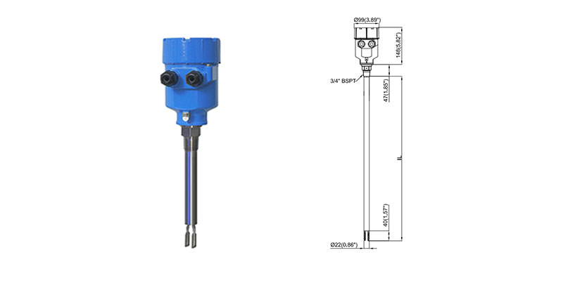 | 加長(zhǎng)型音叉液位開(kāi)關(guān)尺寸圖 |
