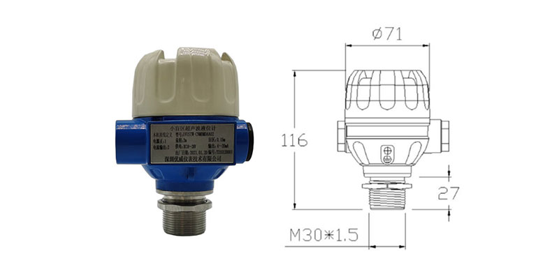 | 小盲區(qū)超聲波液位計(jì)尺寸圖 |