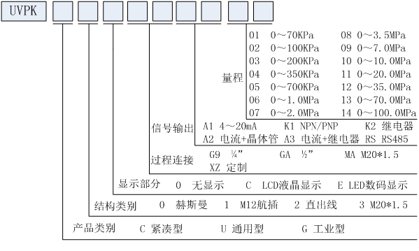 UVPK系列壓力開關(guān)是集壓力測量、顯示、控制與一體的智能數(shù)顯壓力控制產(chǎn)品。該產(chǎn)品為全電子結(jié)構(gòu),前端采用帶隔離膜片的壓阻式壓力傳感器,輸出信號由高精度、低溫漂的放大器放大,傳送至高精度的A/D轉(zhuǎn)換器、換成微處理可以處理的數(shù)字信號,經(jīng)過運(yùn)算處理的信號控制兩路繼電器,對控制系統(tǒng)壓力進(jìn)行測量。該產(chǎn)品使用靈活、操作簡單、調(diào)試容易、安全可靠,廣泛應(yīng)用于水電、石油、化工、機(jī)械、液壓等行業(yè),對流體介質(zhì)的壓力進(jìn)行測量和監(jiān)控。 |