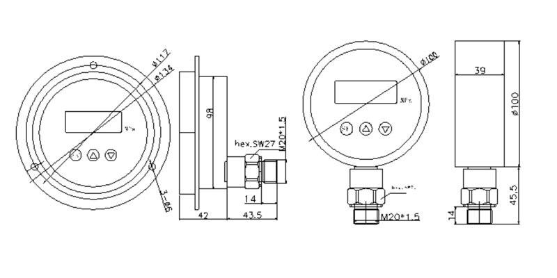 | 通用型壓力變送器尺寸圖 |